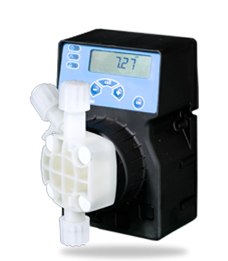 electronic dosing pump with a “CLEVER” control of power, depending on the effective dosing conditions.